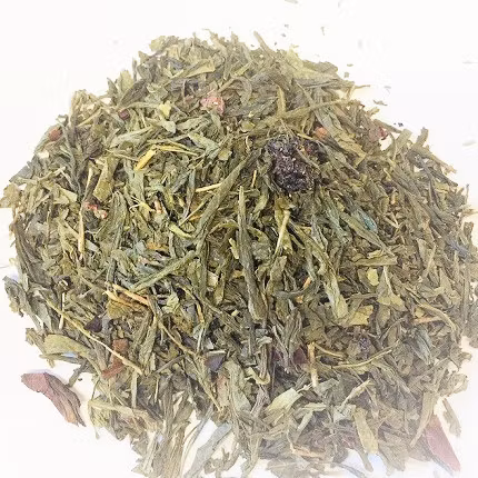 En härlig blandning med hallon, björnbär, björnbärsblad, rabarber och grädde.